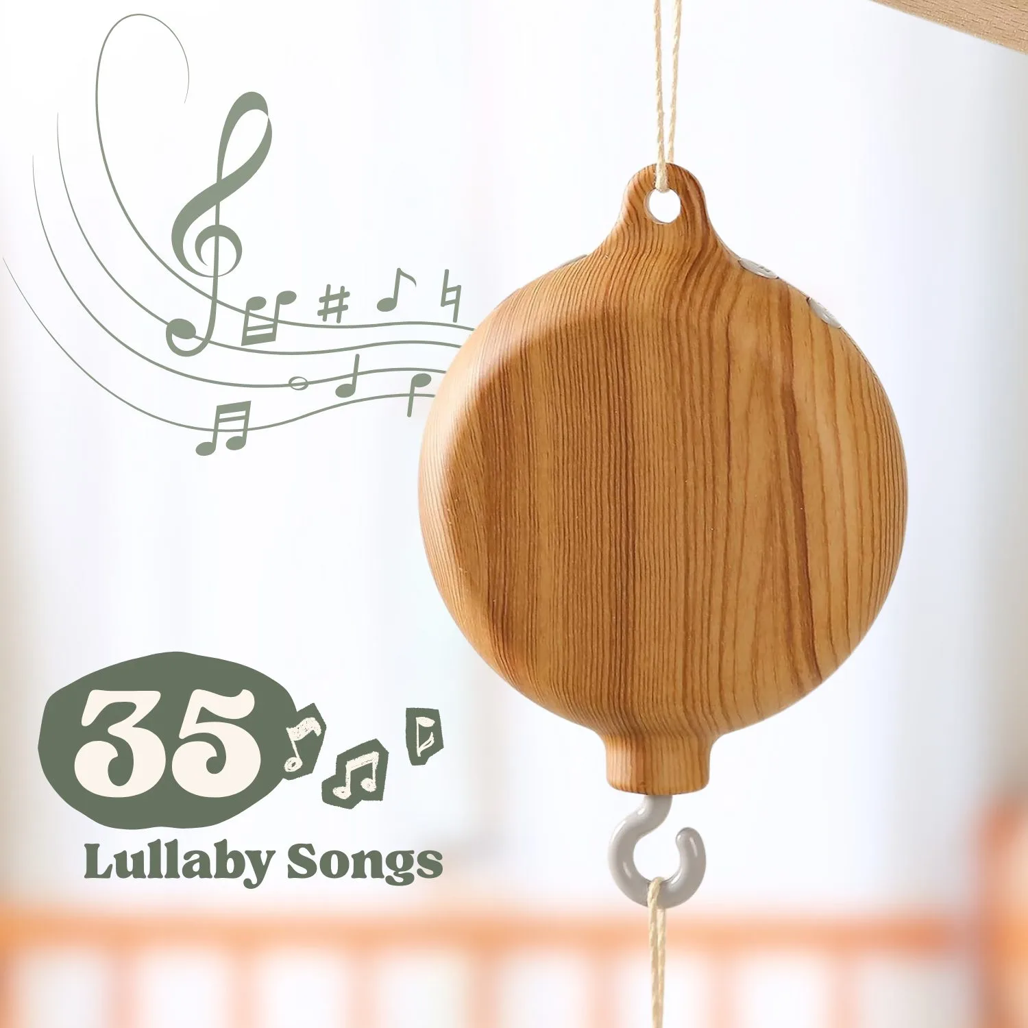 Our electronic rotating music box features a curated collection of songs from around the world: Including 35 classic lullabies, traditional children’s songs, instrumental pieces, and seasonal favourites.
