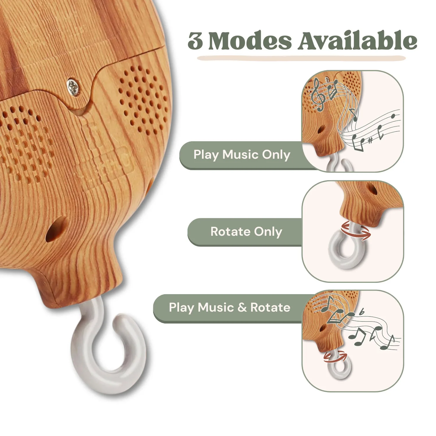 Designed for flexibility, this electronic rotating music box allows parents to adjust sound and movement to suit different moments of the day – from gentle daytime stimulation to a quiet, intentional bedtime routine.