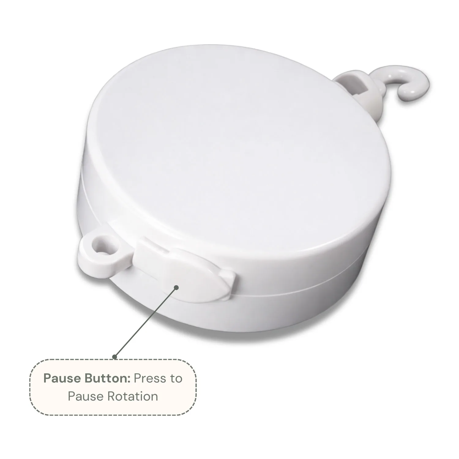 - • Rotating hook gently spins the mobile.